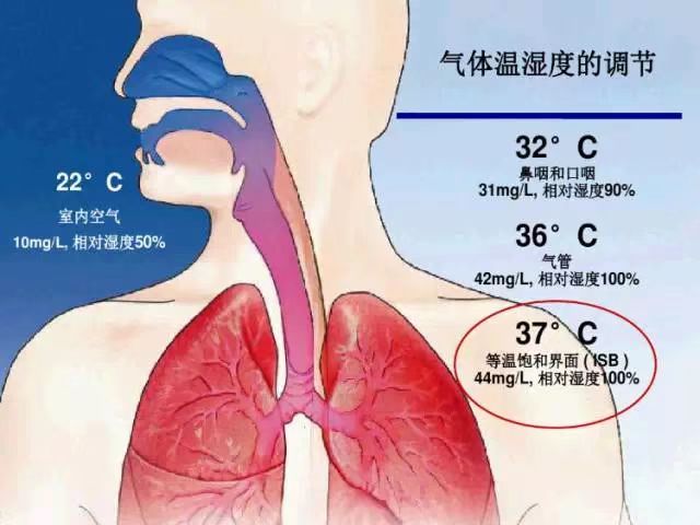 適宜濕度是我們氣道對吸入氣體進行加溫濕化所達(dá)到的條件,通常會達(dá)到 37 °C 和 44 mg/L H2O (BTPS*)。