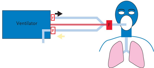 (圖1 呼吸機的吸氣和呼氣端分別安裝過濾器)