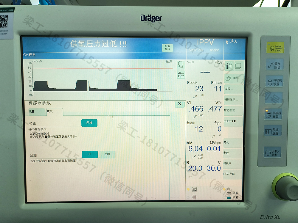接好氧氣管和空氣管,然后開機到正常工作頁面