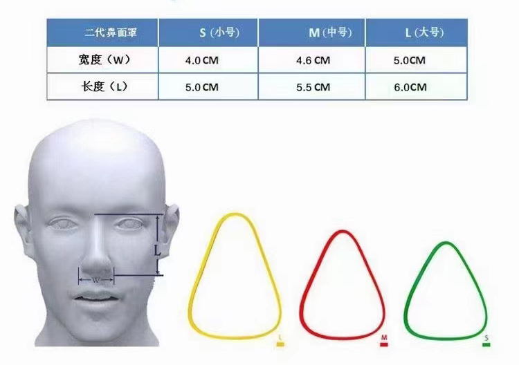 選擇鼻面罩,主要應(yīng)對(duì)鼻翼兩側(cè)、鼻梁區(qū)域、上嘴唇和鼻尖中間進(jìn)行定標(biāo)測(cè)量,佩戴時(shí)注意區(qū)域,如鼻中隔偏曲、鼻梁斷裂等情況。